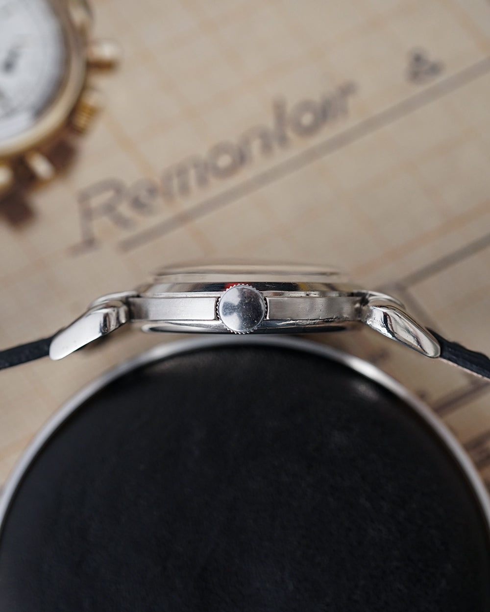 The oversized example seen here is exceptional by any measure. Scarab models are scarce to begin with, but finding one in such an impressive state of preservation is exceedingly uncommon. The case remains crisp and well defined, showing only minimal wear, while the original bullseye dial is nothing short of remarkable: clean, vibrant, and likely the finest we’ve encountered. For collectors seeking the finest vintage Omega, this Scarab leaves little room for comparison.