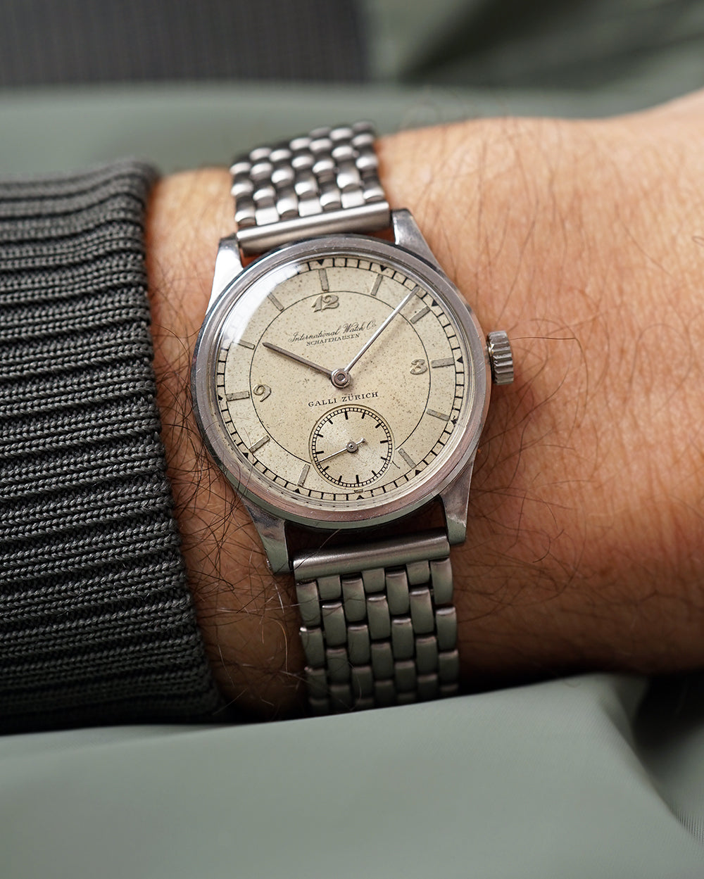 We’re genuinely excited to share this exceptional 1930s IWC, one of those watches that immediately makes you stop and take a closer look. The two-tone sector dial is the clear highlight, beautifully aged with a warm, even patina that draws you in. Applied Breguet numerals paired with clean batons strike a perfect balance, adding elegance without ever feeling overdone.
