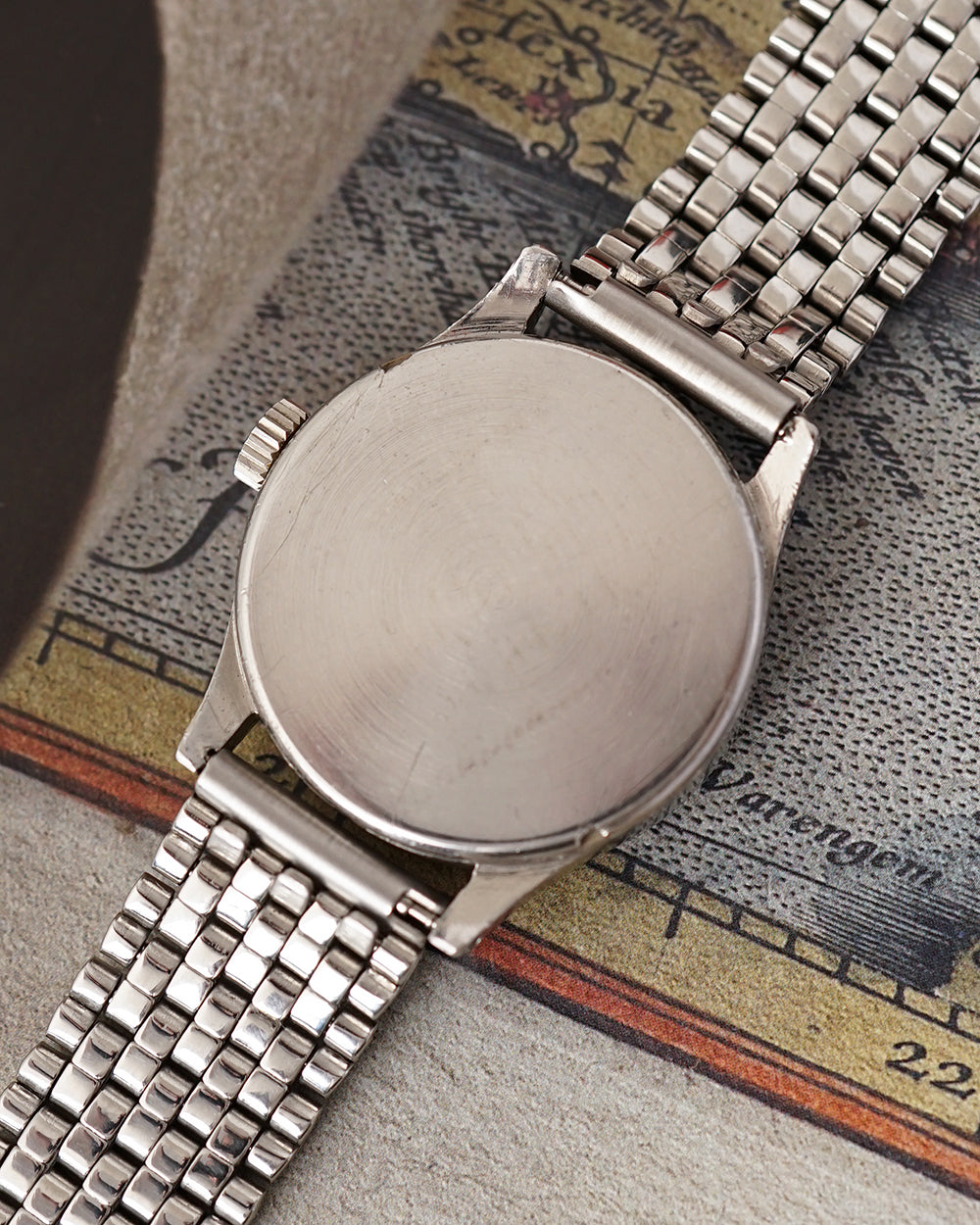 Powering the watch is the renowned IWC Caliber 83, a movement long prized by collectors for its quality and reliability. Everything is housed in a stainless-steel Staybrite “Hermet” case, an early waterproof construction made in minimal numbers and rarely seen today.
