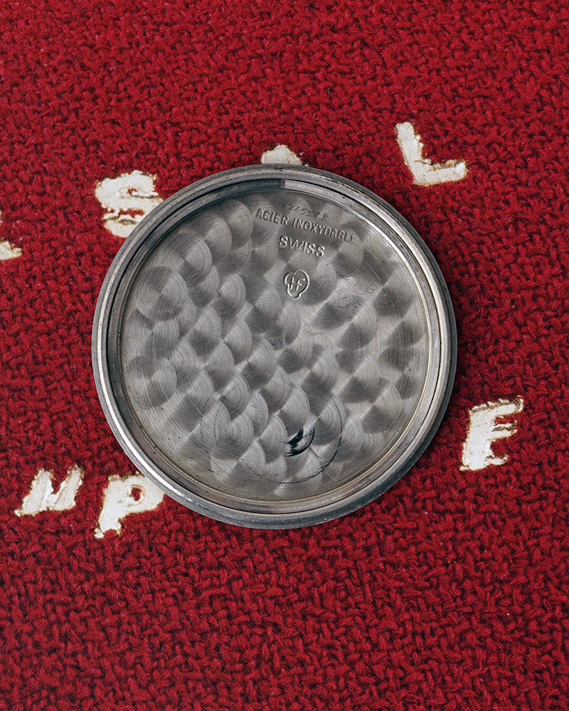 Flip the watch over and inside the caseback sits the hallmark HF, denoting Huguenin Frères, the storied Le Locle casemaker founded in 1868 and long associated with some of the finest Swiss cases of the era.
